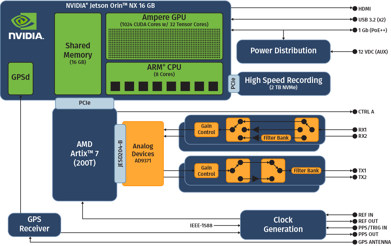 The AIR-T enables software defined radio for any signal processing application by utilizing three classes of tightly coupled processors:
