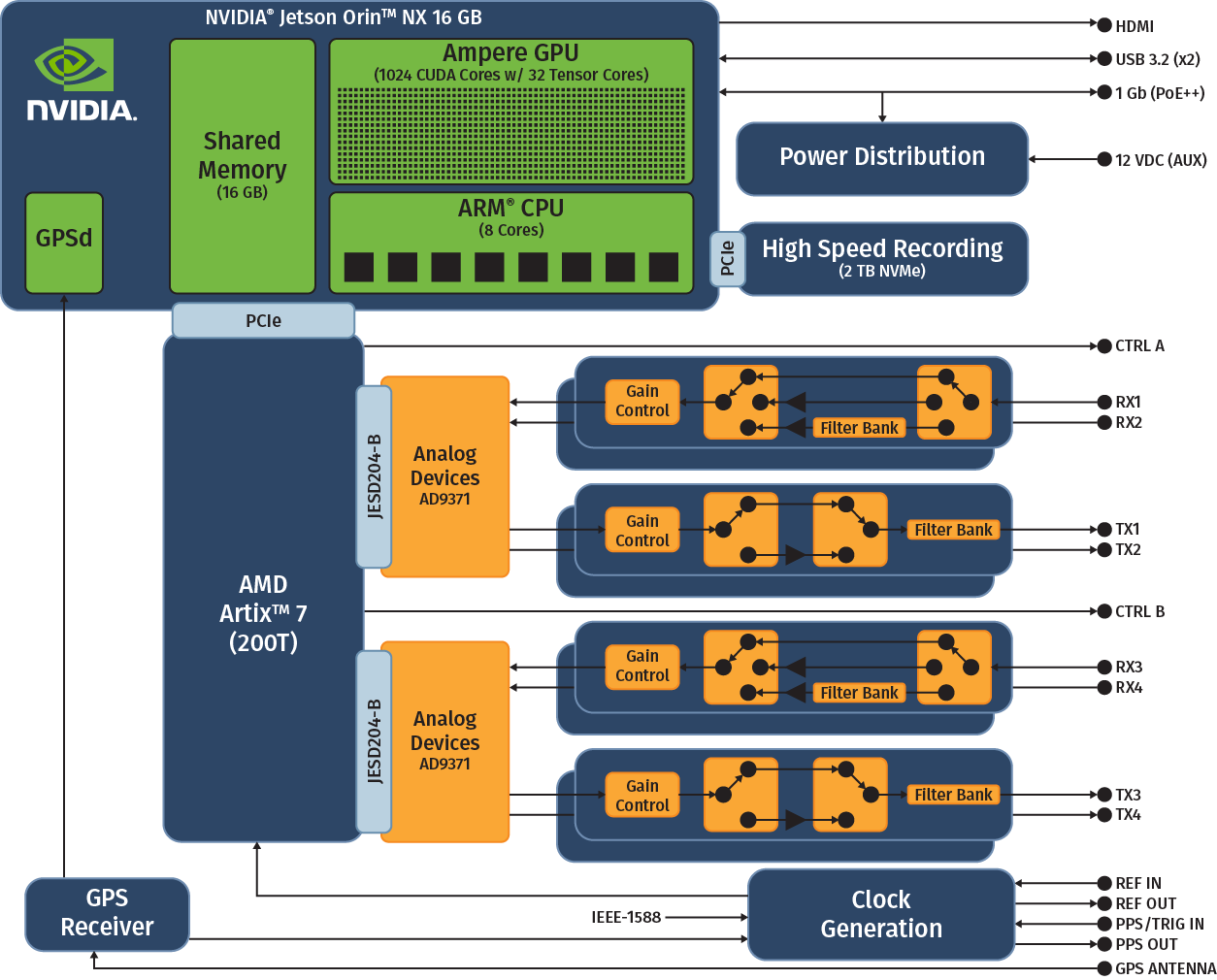 The AIR-T enables software defined radio for any signal processing application by utilizing three classes of tightly coupled processors: