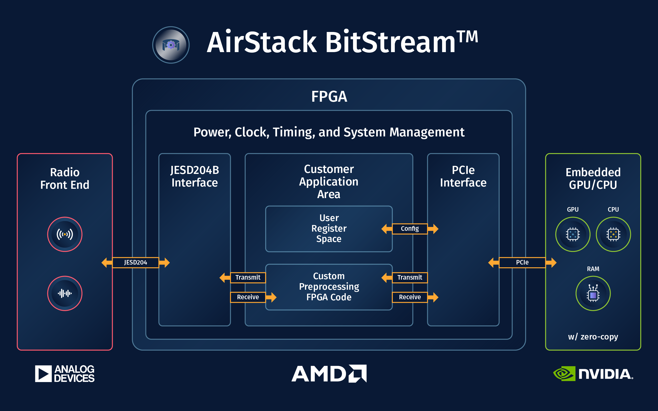 The AirStack BitStream FPGA design comes configured for basic radio receive and transmit functionality.